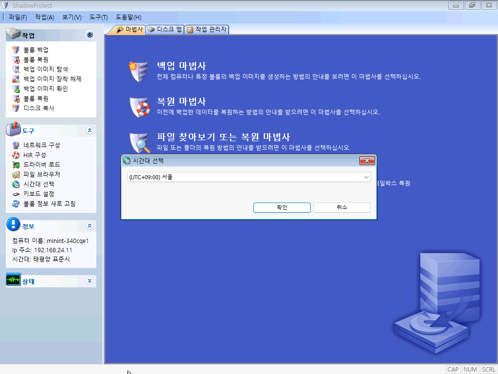 USB 나 CD를 통해 복구 이미지로 부팅합니다. 시간은 UTC +09:00 로 선택하면 됩니다.