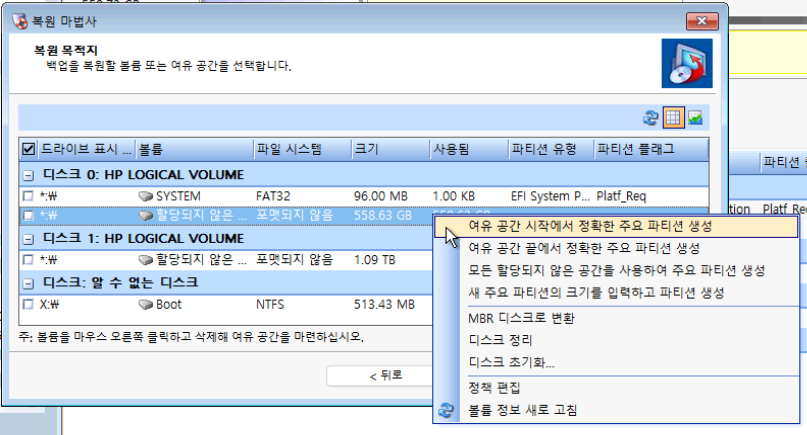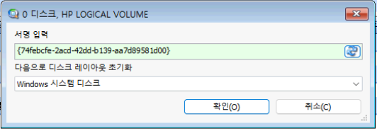 디스크 0 말고도 다른 디스크에 있는 드라이브 복구 시 해당 디스크에 GPT 초기화가 필요할 수 있습니다.