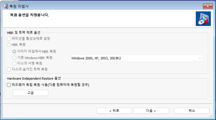 먼저, 복구 볼륨 부터 복원하겠습니다. 위에서 연결한 네트워크 드라이브를 통해 복원 지점의 백업을 불러옵니다.