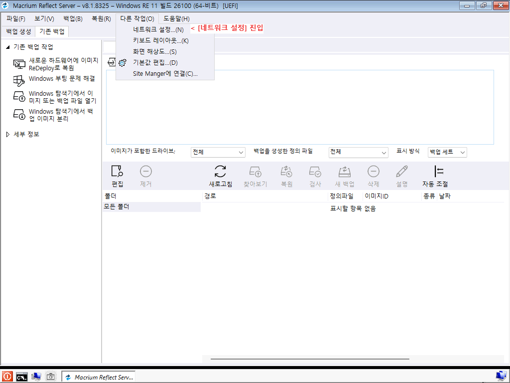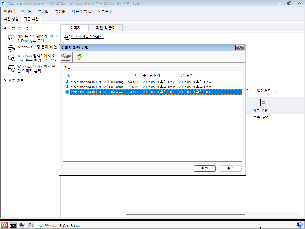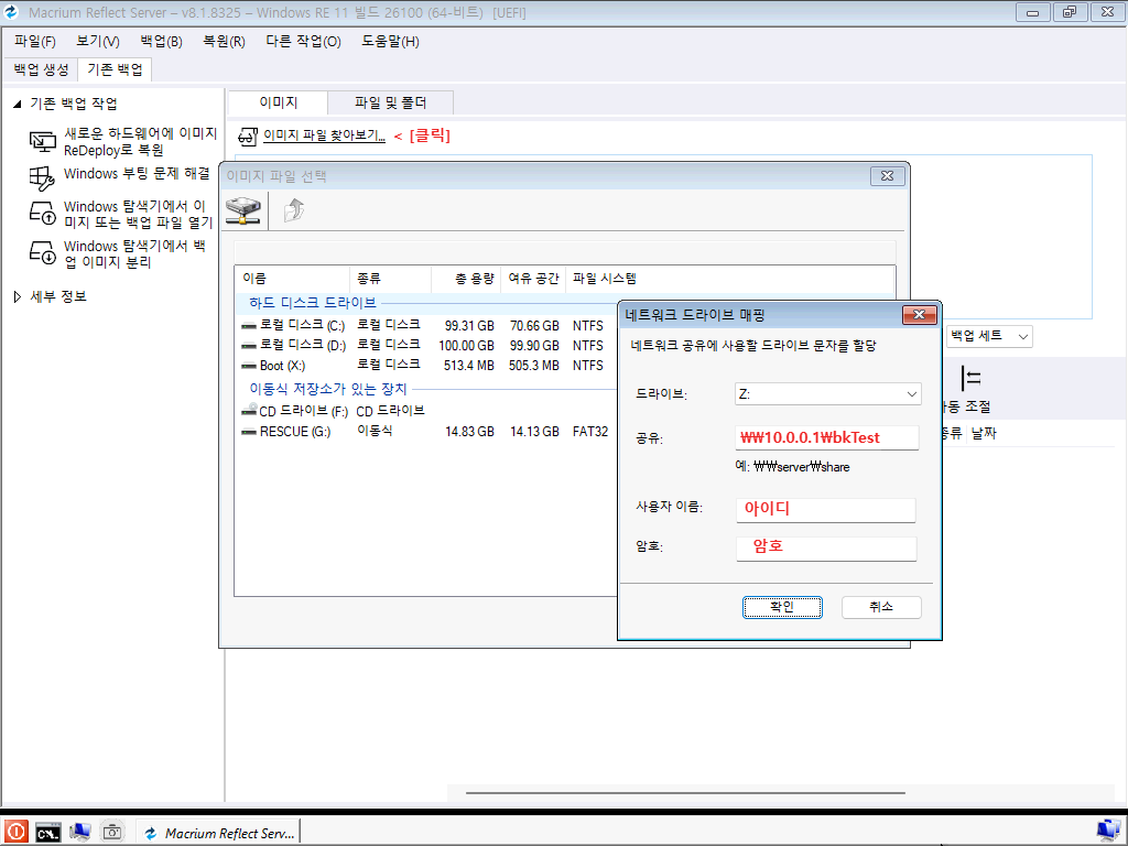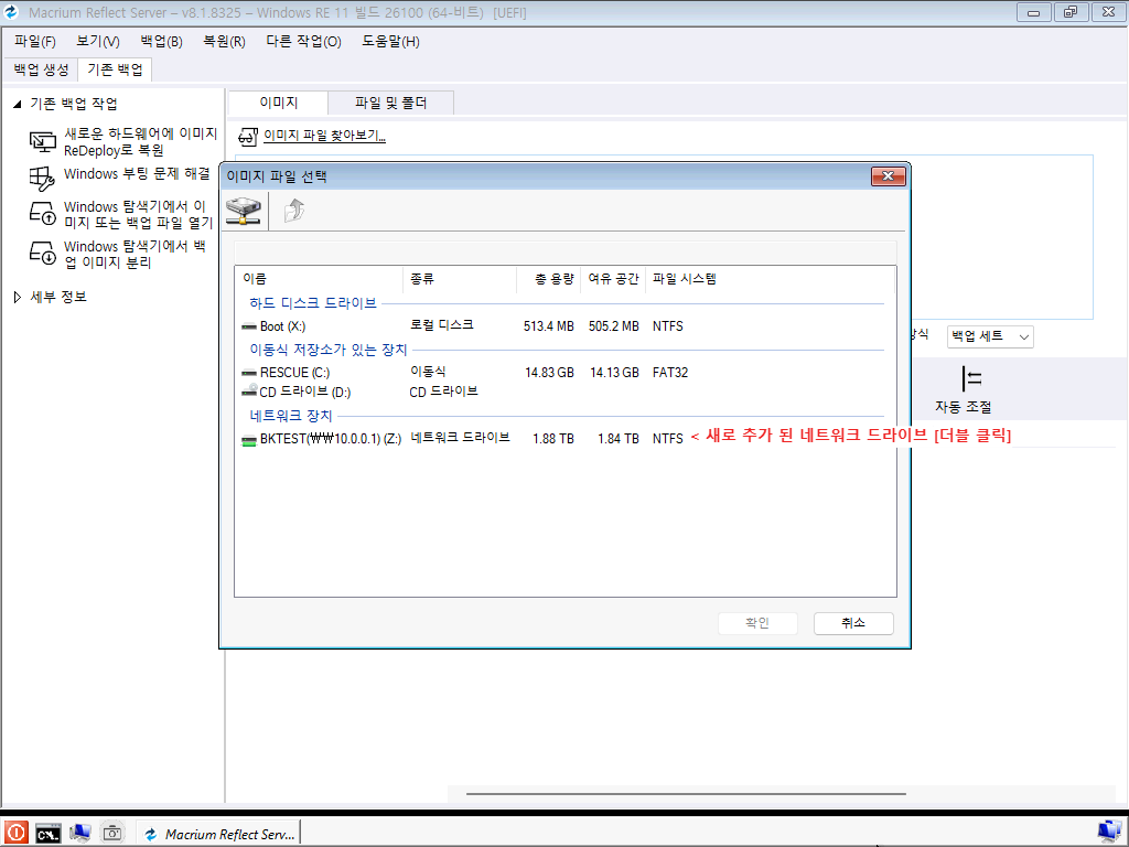 4. 백업 이미지 파일 찾기 (네트워크 드라이브)