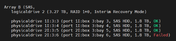 physicaldrive 2I:1:6 (port 2I:box 1:bay 6, SAS HDD, 600 GB, OK)