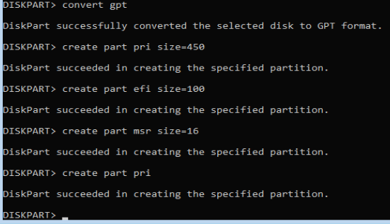 diskpart 로 들어간 후 파티션 생성 작업을 합니다.